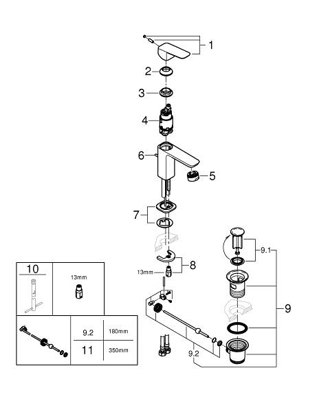 Designed to enhance any modern bathroom scheme, the GROHE Cubeo single-lever basin mixer in striking matt black combines an original soft square shape with an elegant yet tactile metal handle. This compact tap is also super-sustainable. GROHE Water Saving technology limits consumption to an efficient 5l/min (at 3 bar), while still giving a powerful jet of water. Inside, the durable GROHE SilkMove Energy Saving cartridge offers smooth, precise volume and temperature control, and also avoids wasting energy via the cold start function when the lever is in the mid position. An integrated temperature limiter saves even more energy. A useful pop-up waste is operated by a small rod on the back of the tap, so you can open and close it without getting your hands wet. By the way: our Cubeo collection can perfectly combined with both round and square taps, showers, accessories and ceramics, to create a harmonious overall design.